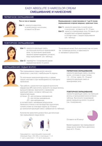 Не содержит аммиак, без резорцинола и парафенилендиамина (PPD). 100% покрытие седины, идеальное осветление до 5 уровней тона. Максимальная безопасность и комфорт, безупречное качество волос. Стойкость цвета 4-6 недель.