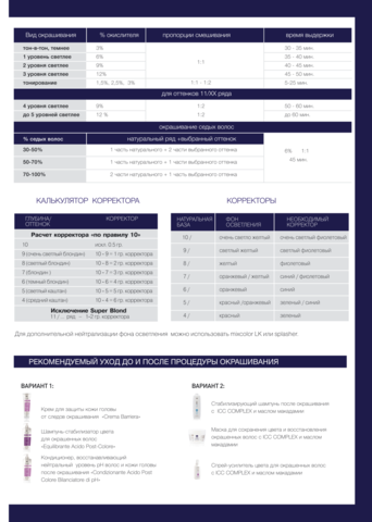 Применение: пропорция смешивания 1:1,5 для основных оттенков,